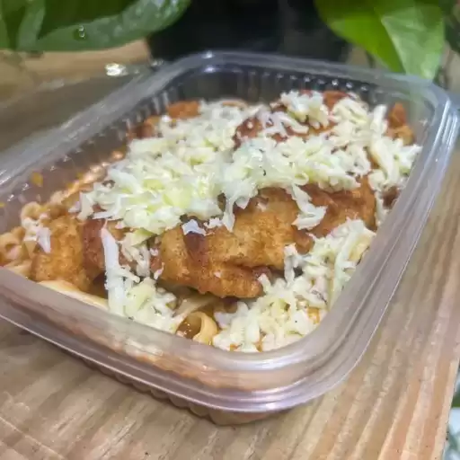 Parmegiana de Frango com Talharim ao Molho de Tomate